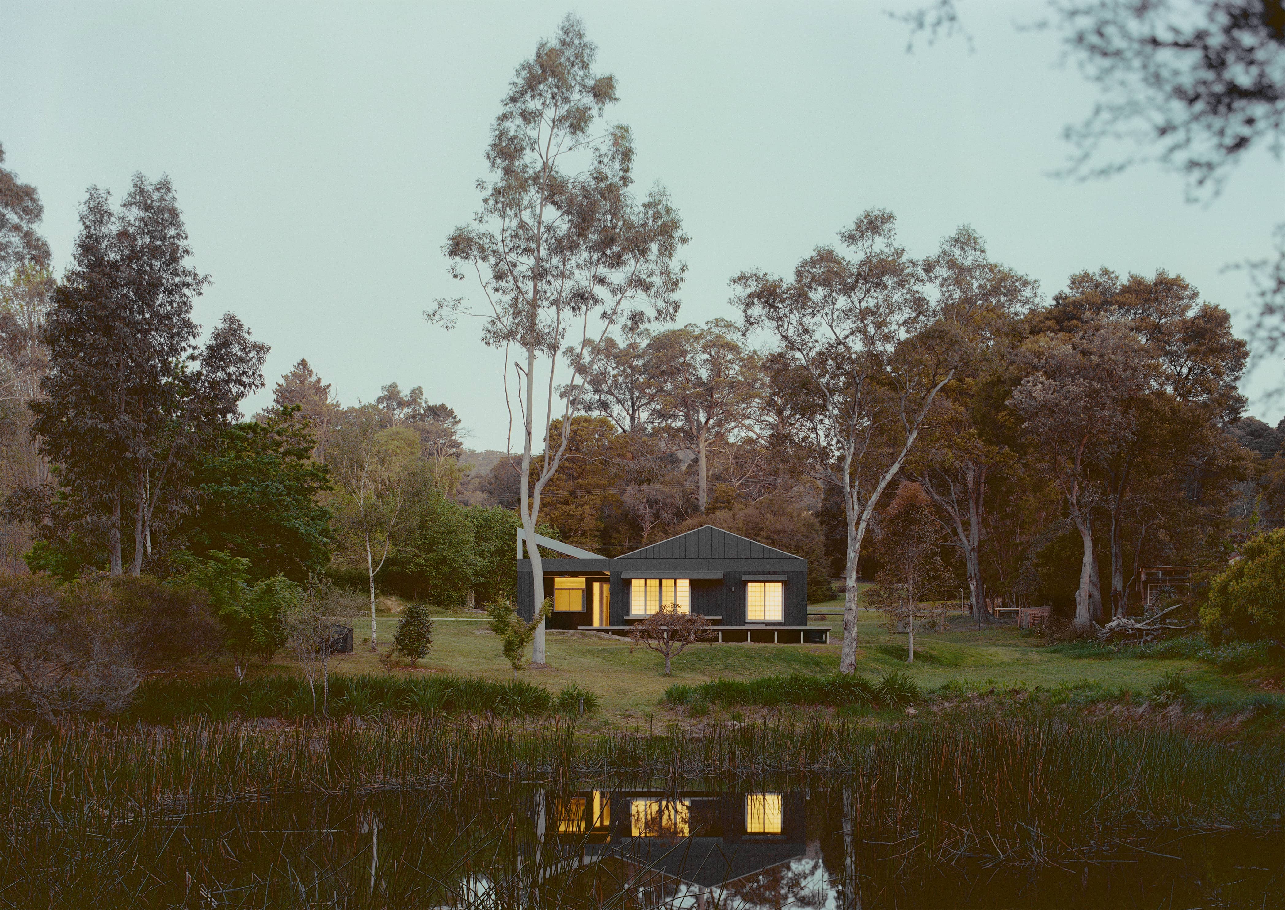 Scent of Wood is a private residence set within the wetland landscape of the upper Yarra Valley, nestled against a mountain backdrop. The home sits quietly within its pastoral setting — humble in scale at 170m², accommodating three bedrooms and two covered outdoor areas.